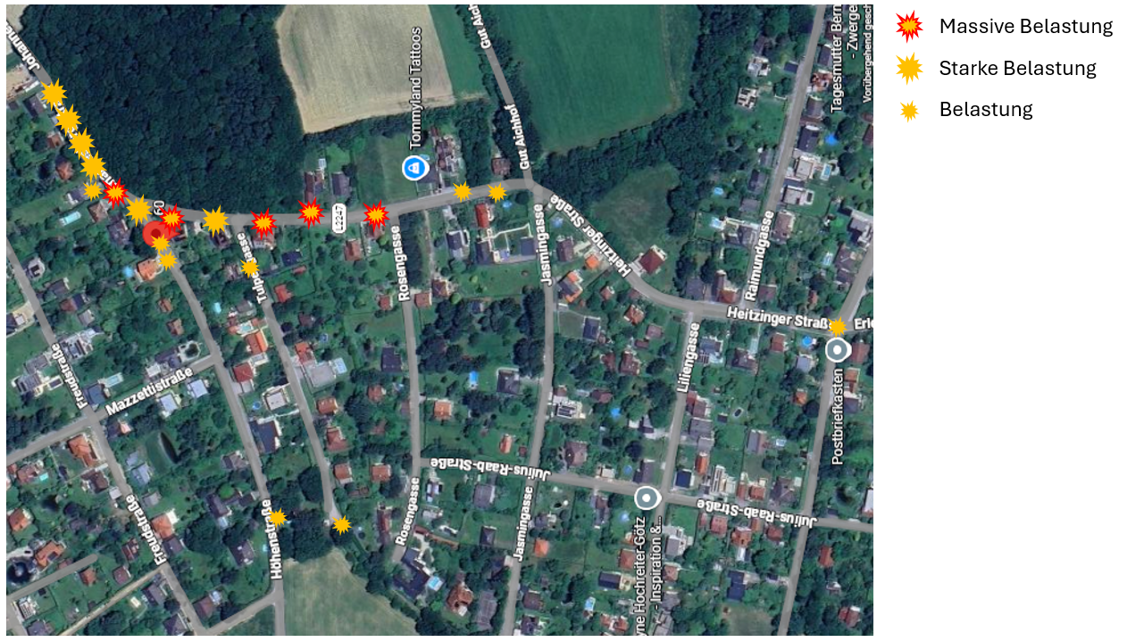 in der Karte sind alle bisher erreichten Anreiner eingetragen die eine Belastung durch die Kanalgase haben. Achtung: es sind noch nicht alle angesprochen worden.
