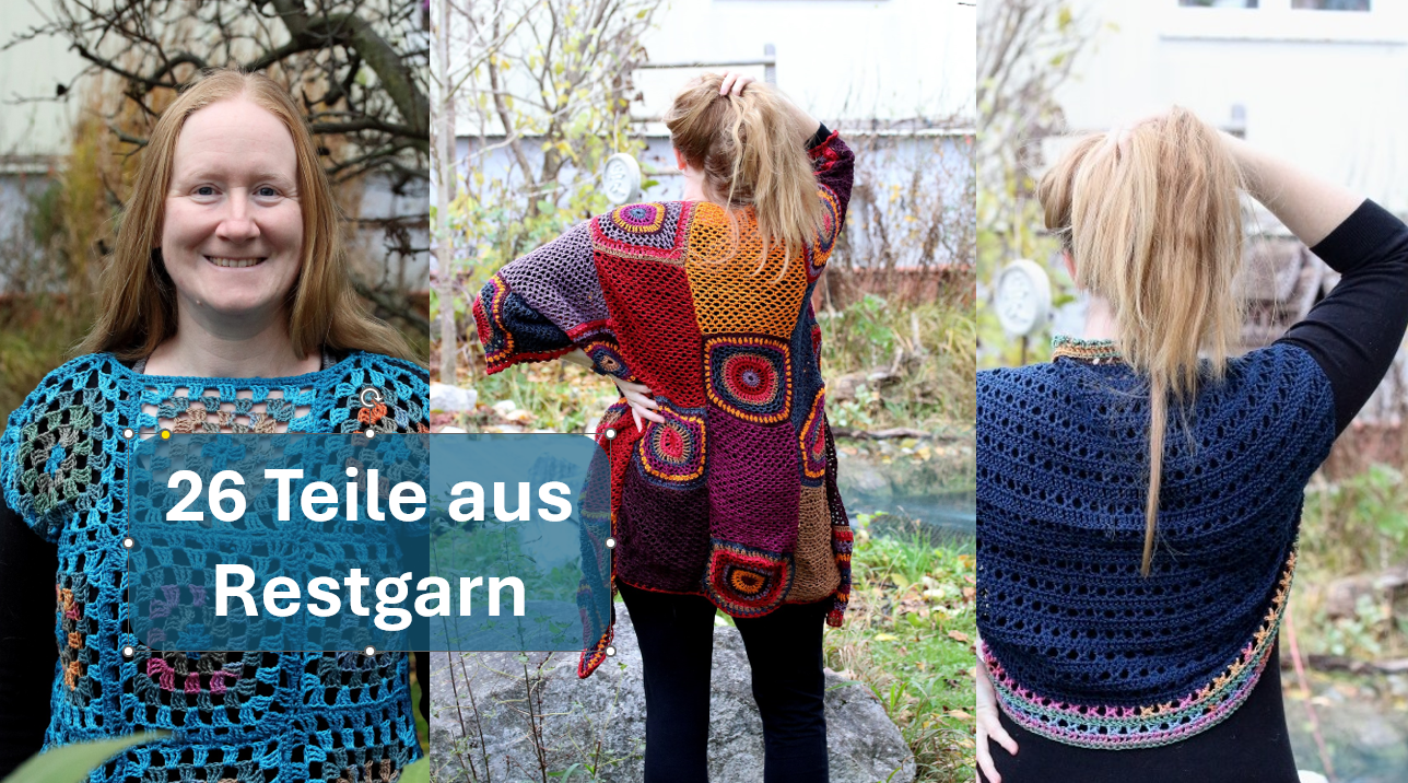 Manchmal entstehen die schönsten Dinge genau dann, wenn man einfach mit dem arbeitet, was schon da ist. In meinem neuesten Video zeige ich dir 26 selbstgemachte Häkel- und Strickoberteile – und fast alle davon sind aus Garnresten entstanden.
